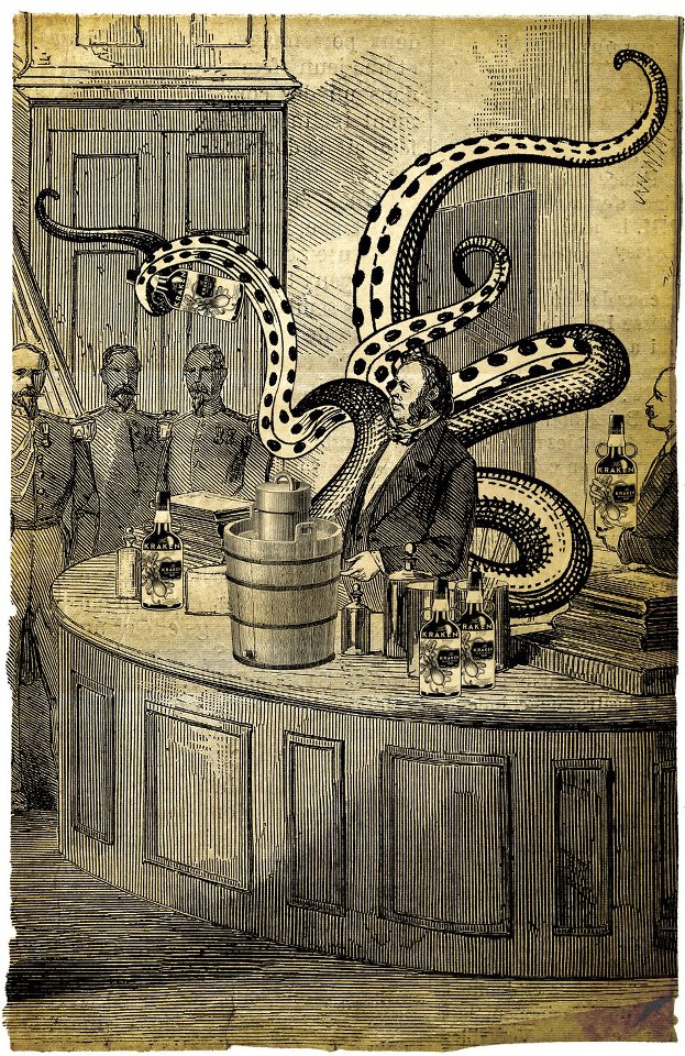 Seguindo essa história fantástica, o Kraken é elaborado com ron do Caribe (Trinidad e Tobago), fermentados a partir de um melaço natural doce obtido das canañas de açúcar das margens caribenhas e posteriormente destilados em alambiques de aço com 13 especiarias secretas e um envelhecimento de 12 a 24 meses em barricas de carvalho