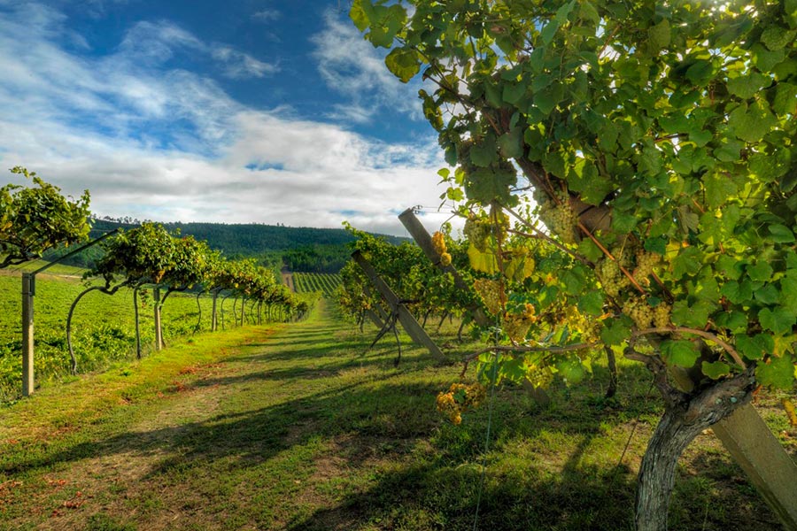 A vindima na região é precoce, e a Lagar de Fornelos colhe as primeiras uvas de toda a Galiza numa vinha virada a sul, protegida por montes que afastam o nevoeiro matinal.