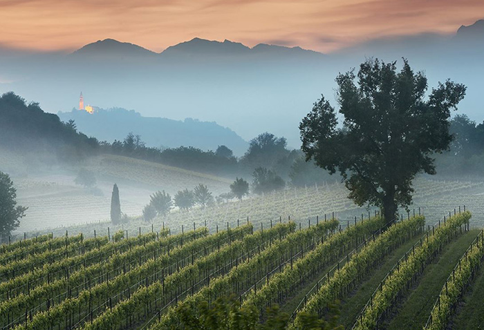 Nas suaves encostas de Ogliano estão os vinhedos onde nasce o vinho emblemático da adega, que pertence à DOCG Prosecco Conegliano Valdobbiadene. O solo calcário e argiloso, exposto aos ventos que sopram dos Dolomitas em direcção ao mar, permite que as uvas desenvolvam as características únicas destes vinhos excepcionais.