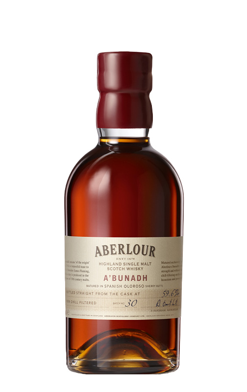 A'Bunadh significa «original» em gaélico, o que já é uma declaração de intenções para este whisky elaborado exclusivamente através de métodos tradicionais, obtendo cada lote cuidadosamente à mão. Estamos perante um whisky de barril que alcançou um estatuto de culto entre os maiores especialistas desta bebida. Uma homenagem ao fundador da famosa casa Aberlour, James Fleming, que se destaca por ser mais cremoso e intenso do que a maioria dos whiskies escoceses.