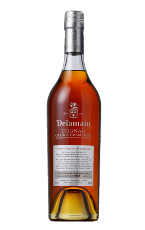 Delamain Millésimé 1989 é um conhaque elaborado a partir de uma colheita específica, algo incomum na elaboração deste tipo de bebida, uma vez que a maioria adiciona aguardentes de diferentes colheitas para obter uma certa uniformidade. Para isso, são selecionados pequenos lotes que, após anos de envelhecimento em barricas, são colocados à venda. Foi o caso desta colheita de 1989, que chegou ao mercado 30 anos depois. Provém de uma única vinha do município de Marancheville e apresenta-se na degustação extremamente redondo e persistente, oferecendo notas de figo, marmelo e anis, com um fundo também de cravo, canela e café. Ideal para desfrutar e deliciar-se com ele de forma descontraída durante uma longa sobremesa.