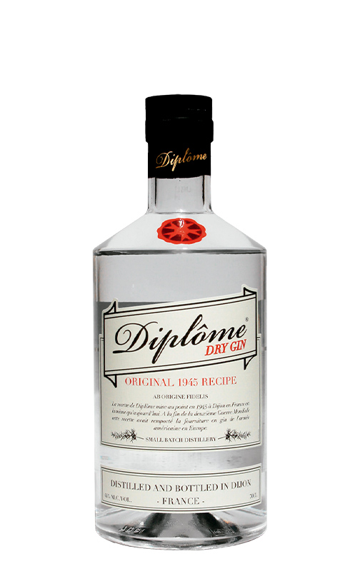 Diplôme Dry Gin es una ginebra artesanal francesa cuya receta se remonta a 1945, convirtiéndose así en una de las ginebras más antiguas del país. Entre sus botánicos destacan: enebro, cilantro, limones, cáscara de naranja, raíz de iris, azafrán, angélica y semillas de hinojo.