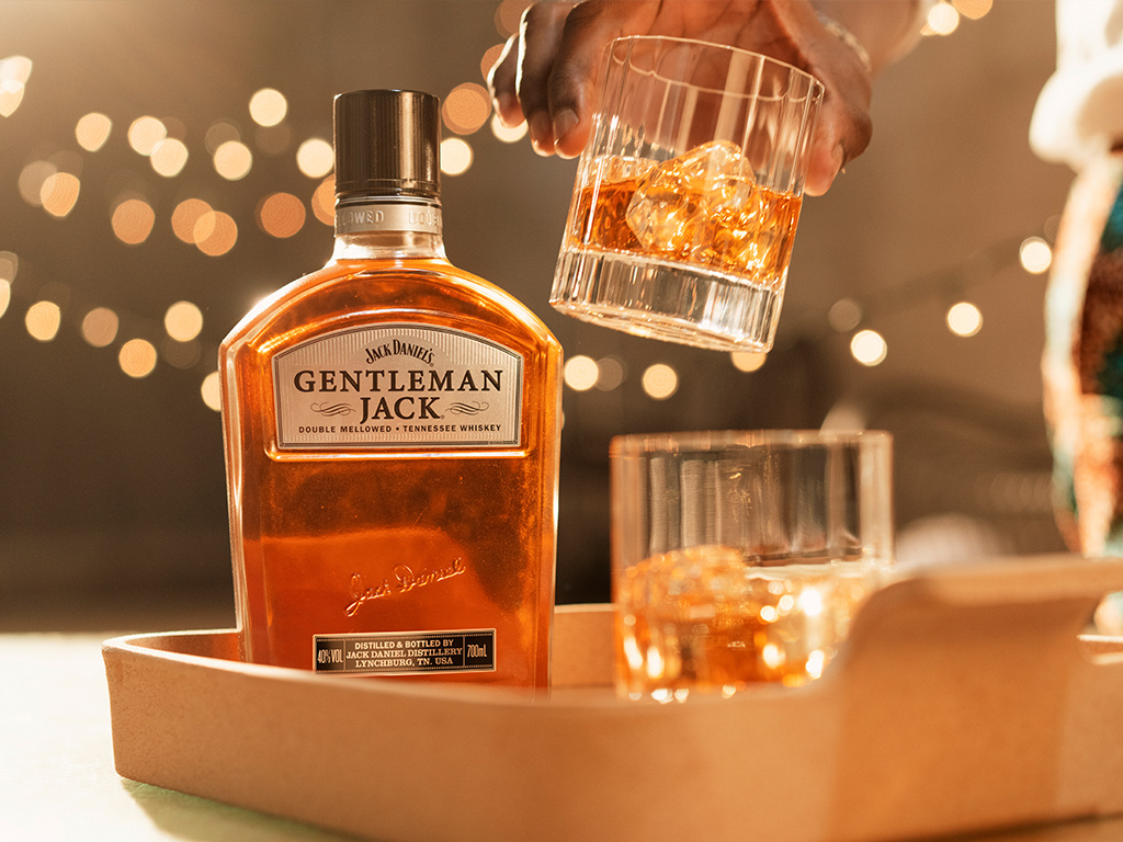 Inspirado no primeiro mestre destilador e fundador da empresa, Jack Daniel. Gentleman Jack é submetido a uma segunda filtragem com carvão de bordo para obter uma suavidade excepcional. O seu aroma equilibrado é ideal para celebrar ocasiões especiais. É excelente para paladares muito refinados.