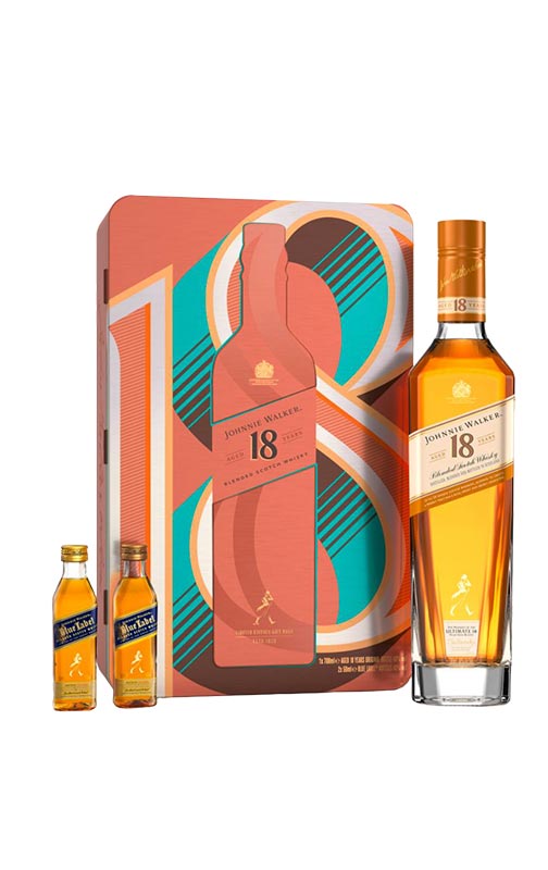 Johnnie Walker 18 YO + 2x5cl Conjunto miniatura para presente com estojo de metal
