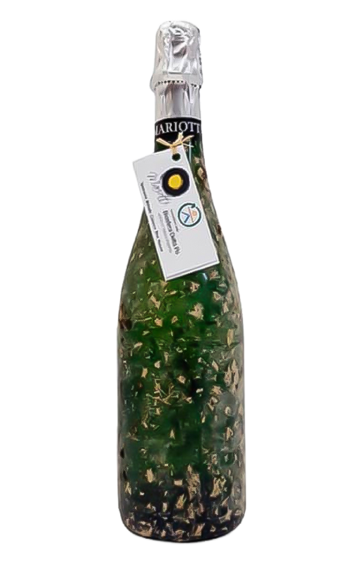 Mariotti Stella Maris Blanc de Noir Brut é um espumante muito especial por vários motivos. Em primeiro lugar, porque, como o próprio nome indica, apesar da sua aparência dourada, é elaborado inteiramente com uma variedade tinta, a Fortana. Por outro lado, porque permanece durante um ano debaixo do mar enquanto termina o seu estágio em garrafa, onde realiza a segunda fermentação. Isto permite um maior contacto das leveduras com o vinho. Ao longo desta fase subaquática, as garrafas são colocadas em cestos normalmente utilizados para o cultivo de ostras. O resultado? Um vinho original com grande complexidade na degustação e uma excelente acidez. Ideal para experimentar um espumante diferente.