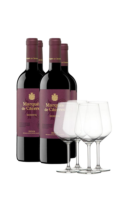 Pack Marqués de Cáceres Reserva 2018 (x4) com 4 Copas