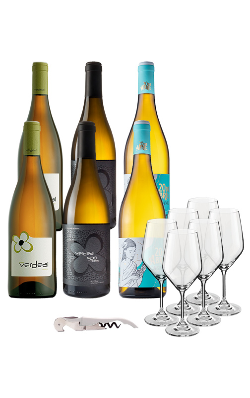 Com este pack espetacular e acessível, poderá provar os melhores vinhos da adega: Verdeal 2022 (x2), Verdeal 500 Flores 2020 (x2) e 20 de Abril 2022 (x2) com a oferta de 6 copos da adega e um saca-rolhas serigrafado.